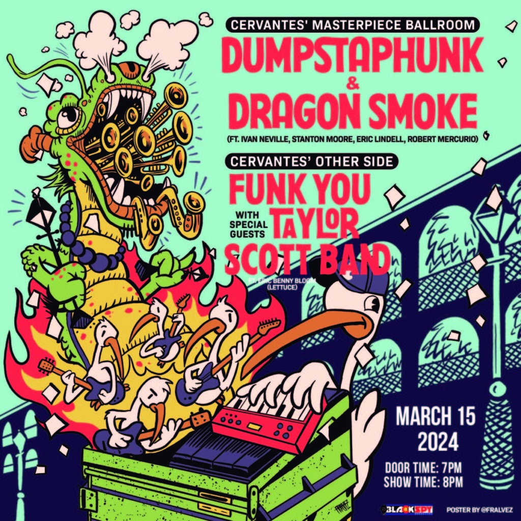 15MARDumpstaphunk & Dragon Smoke (Ballroom) + Funk You w/ Taylor Scott Band Ft. Eric Benny Bloom, Where There’s Smoke (Other Side) at Cervantes