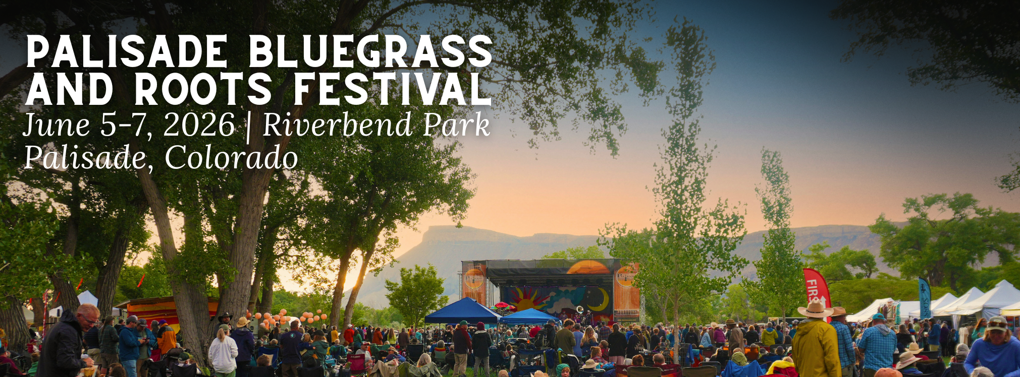 The Palisade Bluegrass & Roots Festival has both premium and general camping areas just for festival guests. With a camping pass, you can relax and enjoy the weekend without worrying about travel. If you prefer not to camp, the Grand Valley has many places to stay. You can choose from hotels, bed and breakfasts, or other campgrounds nearby. Palisade and the surrounding area are also famous for their wineries and outdoor activities, so could plan to stay longer and explore.