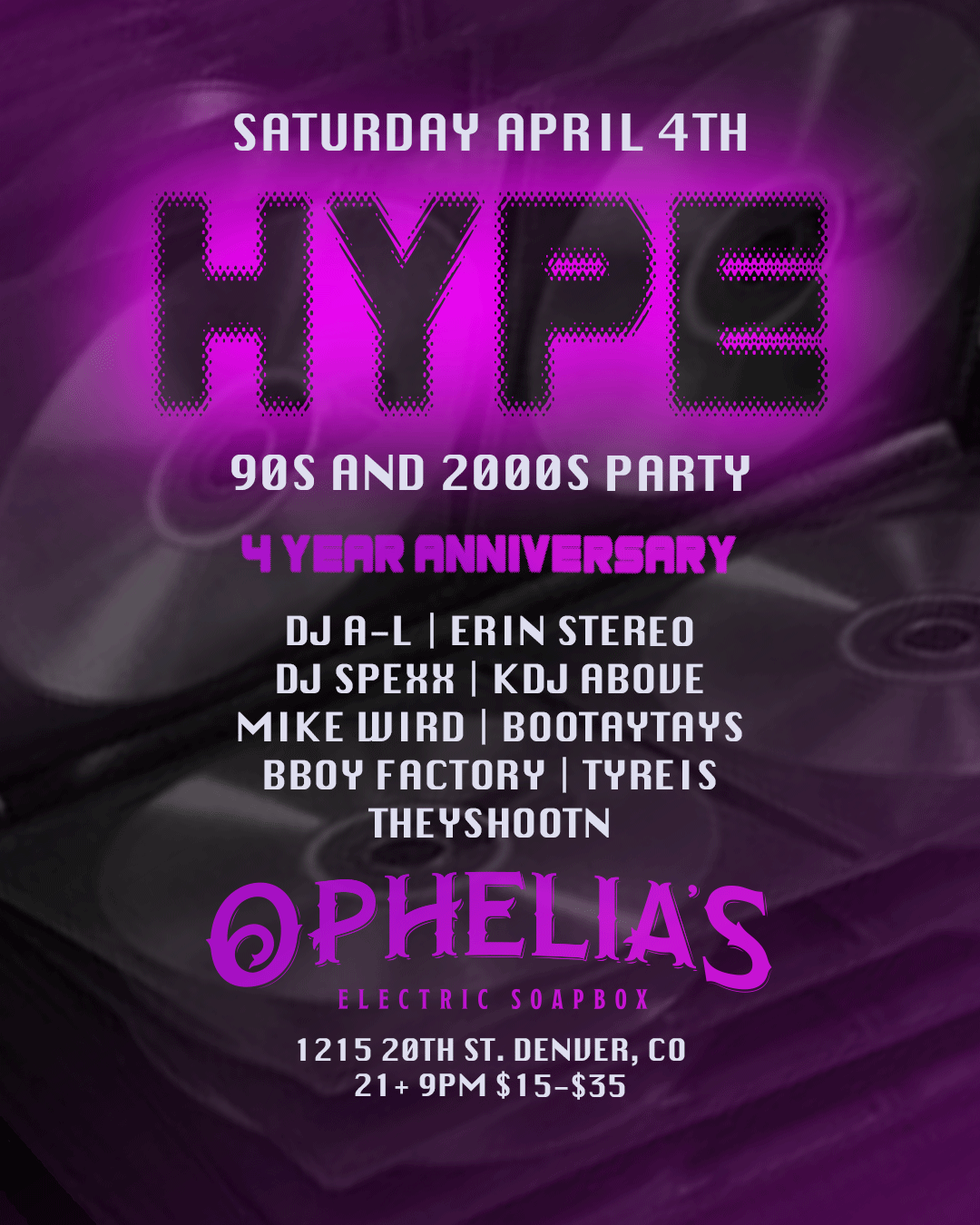 04apr7:00 pm11:45 pmHype 90s at Ophelia's